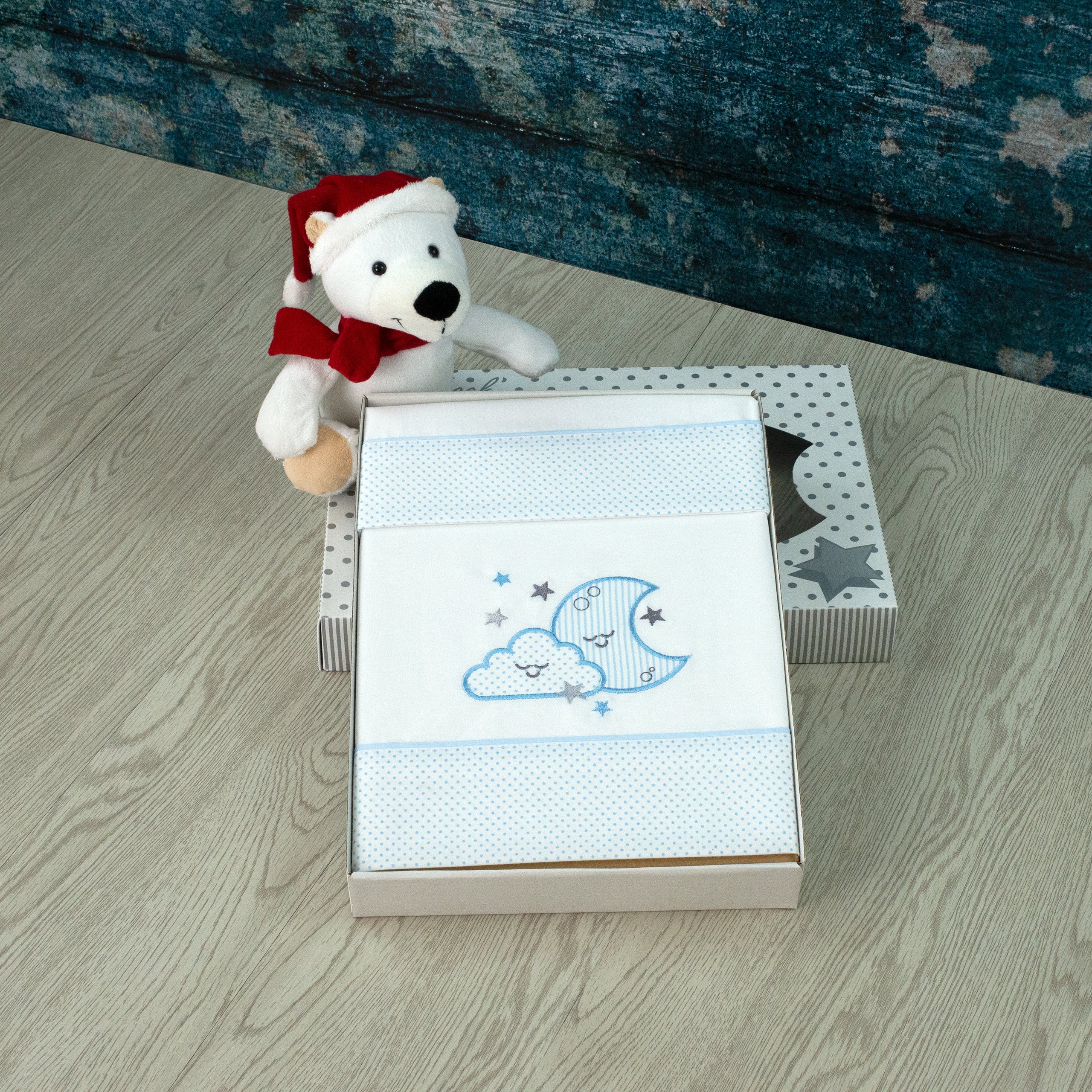 Jogo de alcofa bordado em 100% algodão.