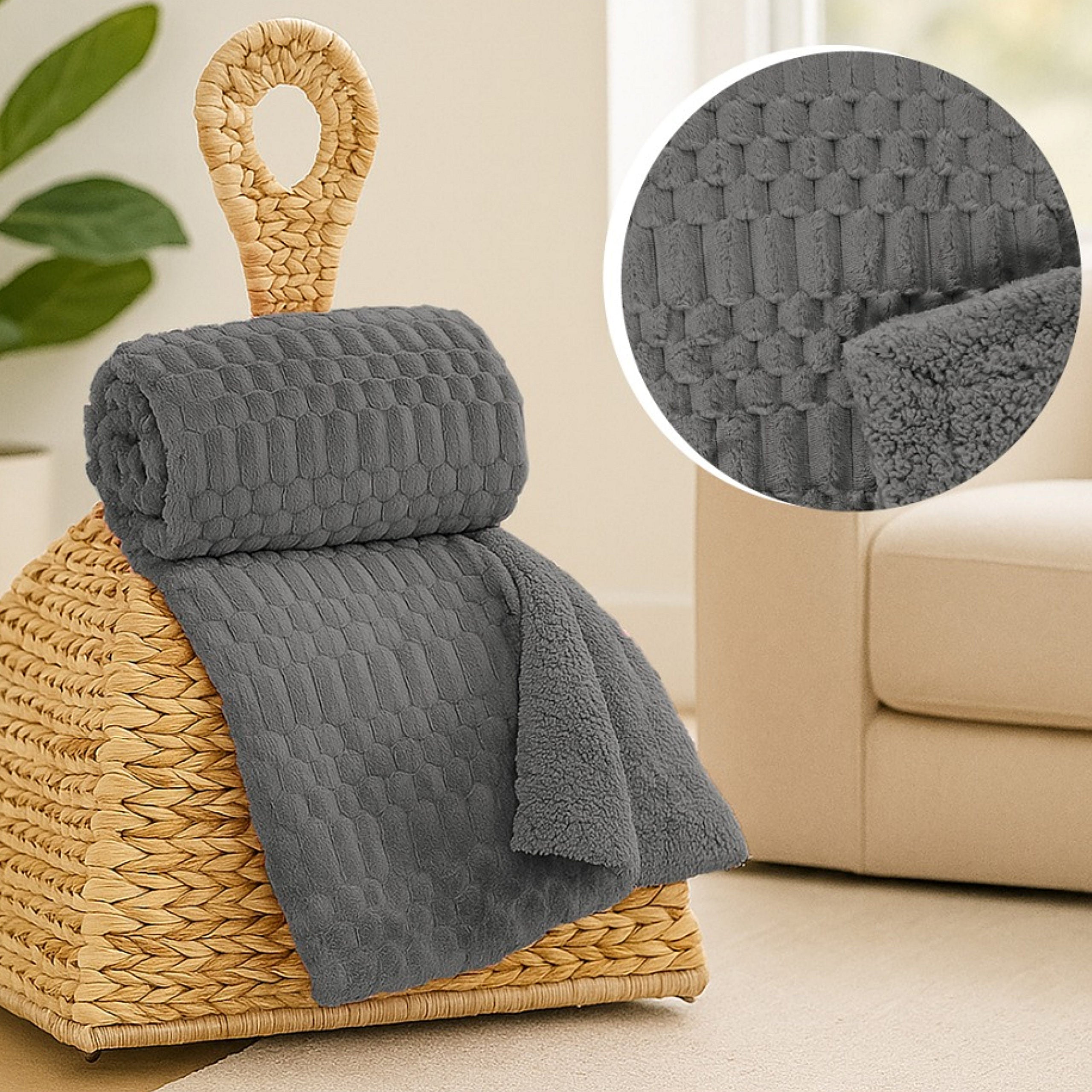 Com um padrão simples e moderno é complementada com um reverso em "pêlo de borrego" na mesma cor.