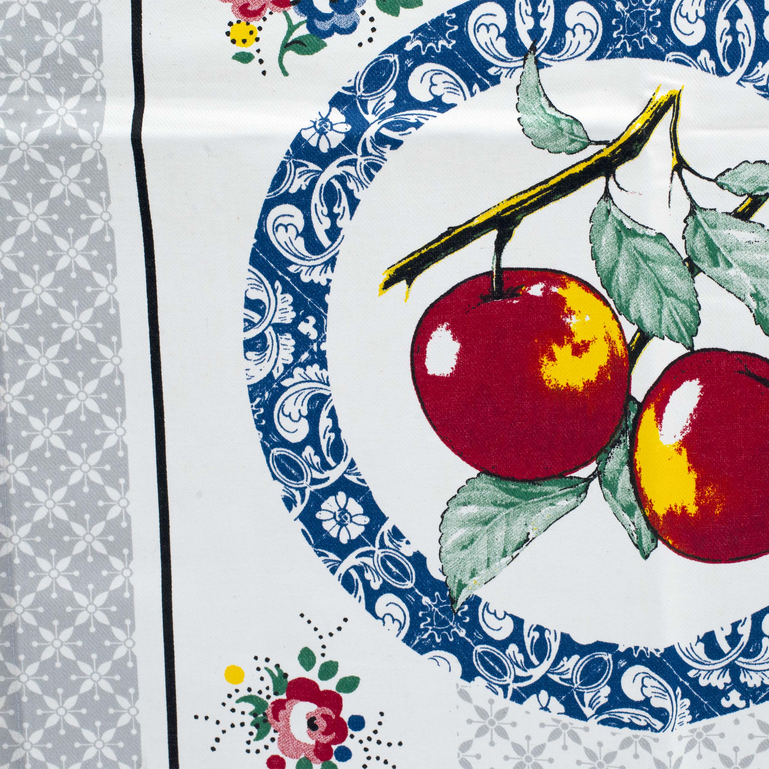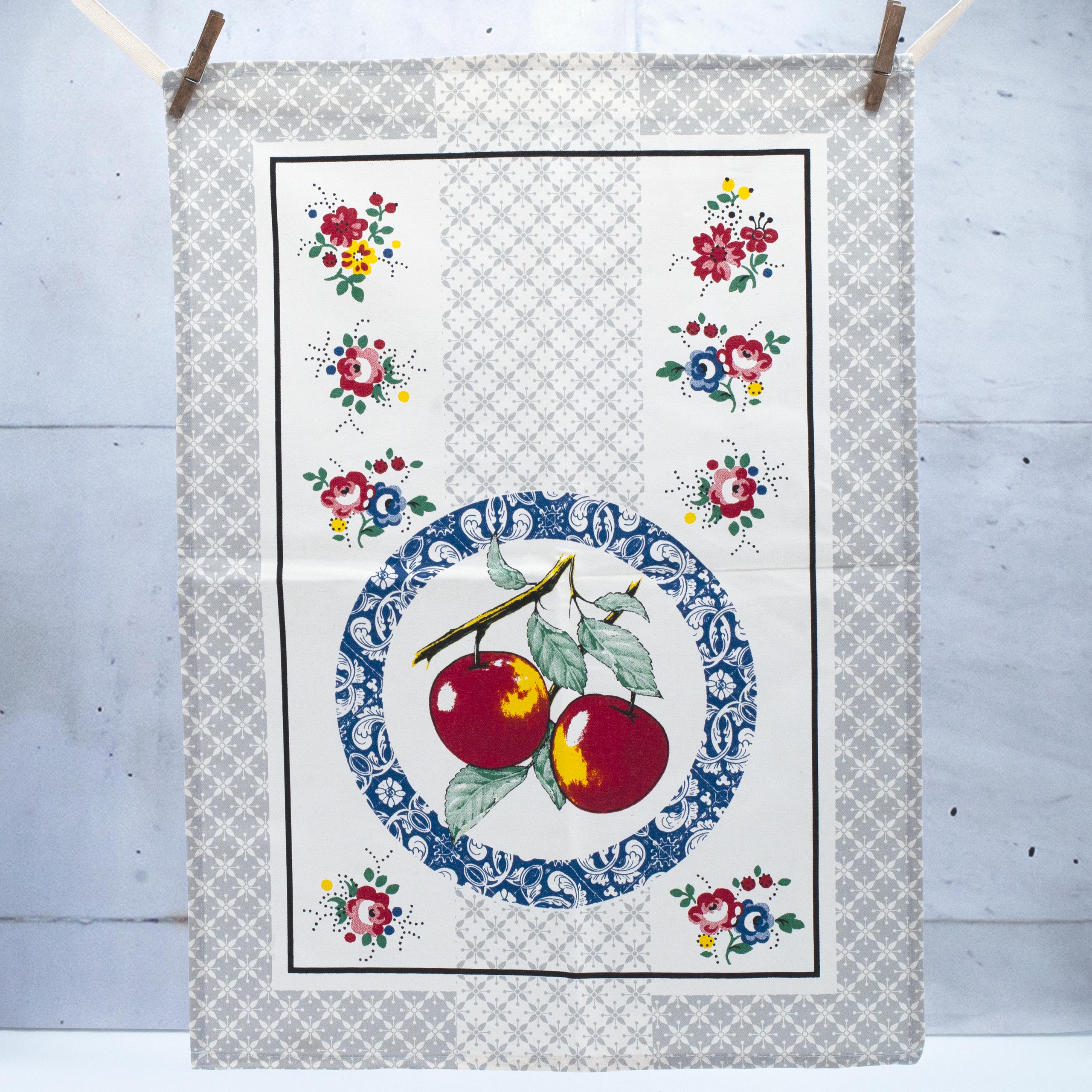 Pano de cozinha estampado em sarja, 100% algodão, com padrões pitorescos que alegram qualquer cozinha.